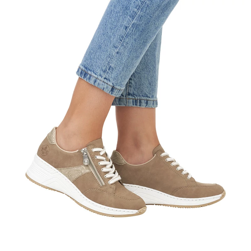 A RIEKER márka női barna félcipőt nem csak finom varrások díszítik, hanem a cipő sarkán és oldalán állati elemekkel is díszítettek. A klasszikus fűzést a funkcionális cipzárral együtt biztosítja a könnyű felvételt és beállítást. A kivehető puha bőr talpbetét minden lépésnél kényelmet garantál. Sebastiano cipő webáruház Rieker lábbeli