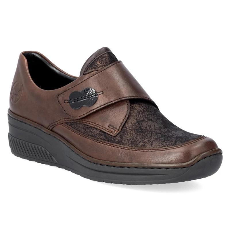 Ezek a barna cipők finoman varrtak, és a sarkát dombornyomott márkalogó díszíti. A tépőzár segítségével egyszerűen belecsúszik a cipőbe. A puha bőr talpbetét maximális kényelmet garantál. Ha olyan cipőt keres, amely ötvözi a kényelmet, a minőséget, és alkalmas különféle alkalmakra, akkor ez a modell kézenfekvő választás lesz Sebastiano cipő webáruház Rieker lábbeli