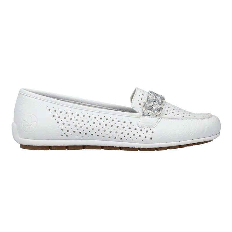 A RIEKER mokaszinek nemcsak stílusosak, de kényelmesek is. A perforált felsőrész eleganciát ad a cipőnek és növeli a légáteresztő képességét, ami nagyszerűen kényelmesen tartja a lábát a forró napokon. A lábfej feletti dekoratív betét egy kis eredetiséget és luxust kölcsönöz a cipőnek. Rugalmas talpa és puha talpbetétje hosszú távú viselet esetén is biztosítja a kényelmet. Sebastiano cipő webáruház Rieker lábbeli