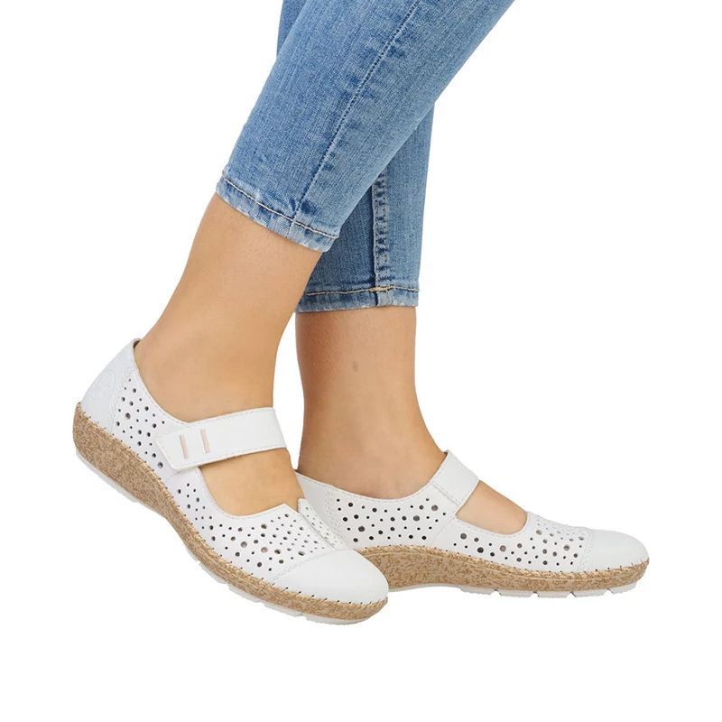 A RIEKER női bokacsizma perforációkkal és a lábfej feletti pánttal díszített, mely tépőzárral rendelkezik a könnyű fel- és levétel érdekében. Egész napos séta közben értékelni fogja a bőr talpbetétet és a talpban lévő Antistress technológiát, amely minden lépésnél gondoskodik kényelméről Sebastiano cipő webáruház Rieker lábbeli