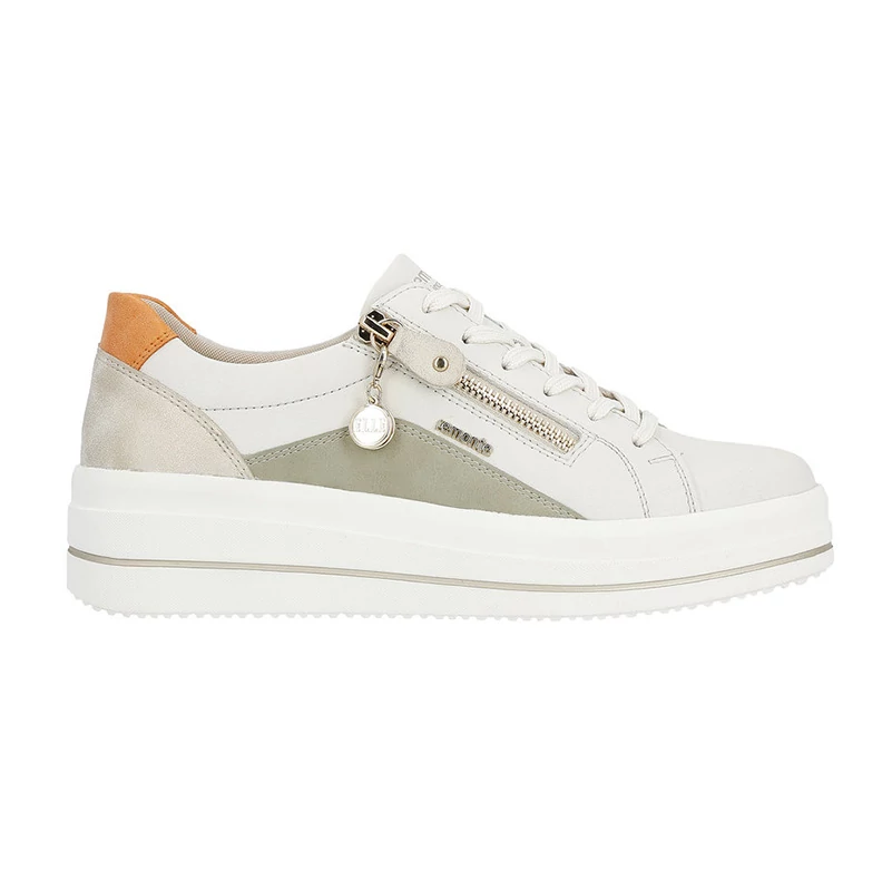 REMONTE cipő - ez a RIEKER márka magasabb vonala, ezt a cipőt a felső anyagok kiváló kombinációja jellemzi. A tornacipők több színből készült felsőrésszel rendelkeznek, és egy ragyogó egységet alkotnak, amely ruhatárad ékköve lesz. Könnyedén felveheti a cipőt a fűzésnek és a lábfejen található funkcionális cipzárnak köszönhetően, ahol a design dísz található. Kényelmes elem a memóriahabból készült, kivehető talpbetét, amely a láb formájához egyénileg igazodik. Sebastiano cipő webáruház Rieker lábbeli