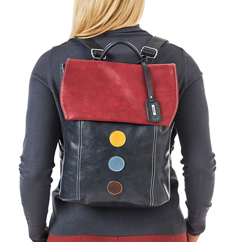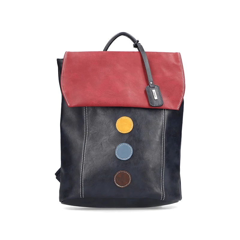 Ha eredeti hátizsákot keres, ez a RIEKER modell lesz a megfelelő választás. A sima kék felsőrész merész színű pöttyökkel és az elején márkanévvel díszített. A színével kontrasztos megjelenési elemet teremtő, mágneses klipszel ellátott felső rész kinyitása után találunk egy cipzáras zsebet, amibe minden belefér, amit magával kell vinni. Ezen kívül van egy cipzáras zseb az apróbb tárgyak tárolására, és egy másik cipzáros zseb található a hátulján. A hátizsák két állítható hosszúságú hátpánttal rendelkezik, melyeket tetszés szerint állítható, a kényelmes kézben tartás érdekében pedig fül található a felső részén. Ez a darab dekoráció lesz számodra akár munkába menet, akár városi séta során. Sebastiano cipő webáruház Rieker lábbeli