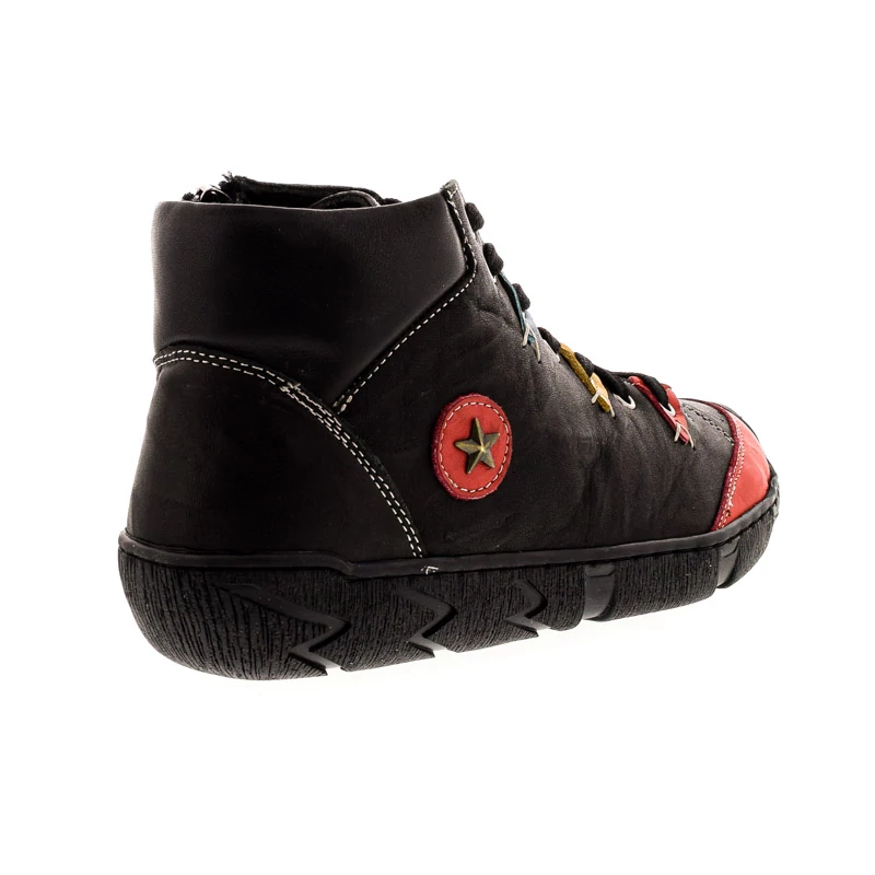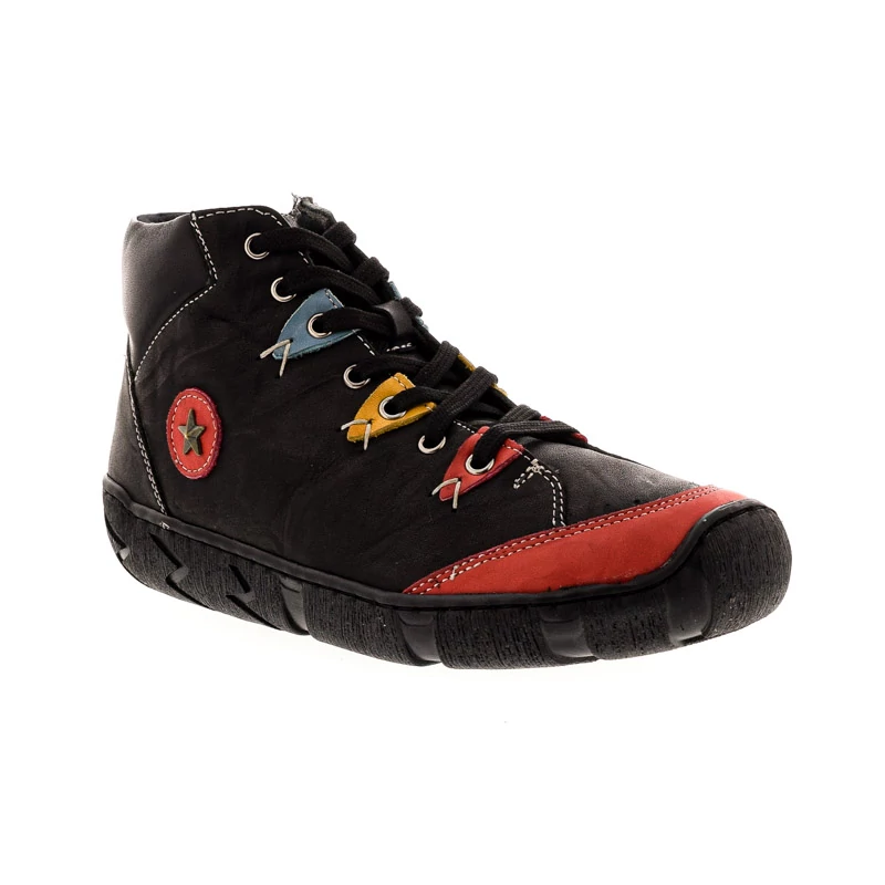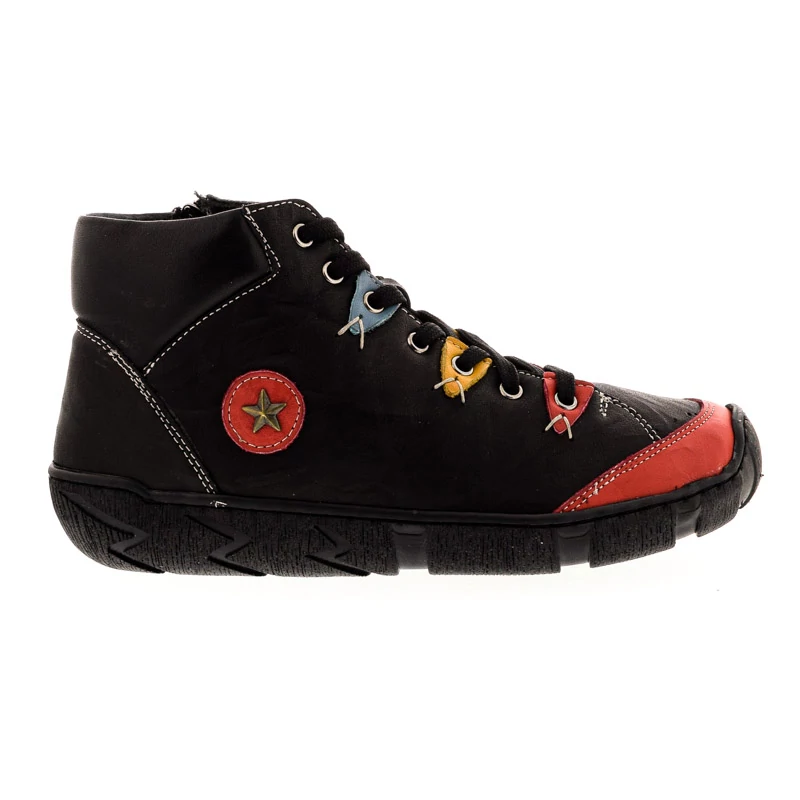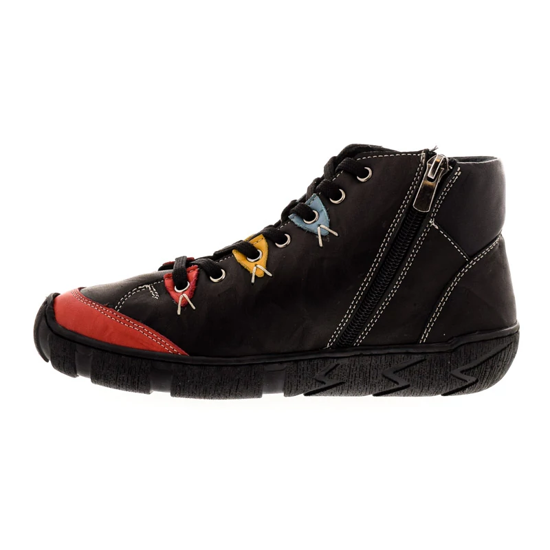 Ez a Sebastiano bokacipő egy egyedi stílusú modell, amely vidám részleteivel kitűnik a hétköznapi darabok közül. Felsőrésze természetes bőrből készült, bélése bőr és textil kombinációja. A puha talpbélés kellemes komfortot biztosít egész napos használat során. Fűzős fazon, belső oldalán cipzárral, a könnyű le- és felvétel érdekében. Talpa gumi, melynek paraméterei 35/20 mm (sarokmagasság/talpmagasság). Kényelmi fazon, bohém hangulatú részletekkel, amely ideális választás az egyedi stílust kedvelőknek. Sebastiano cipő webáruház Női cipő