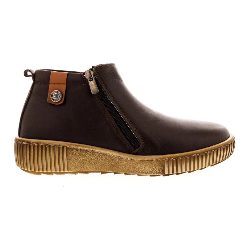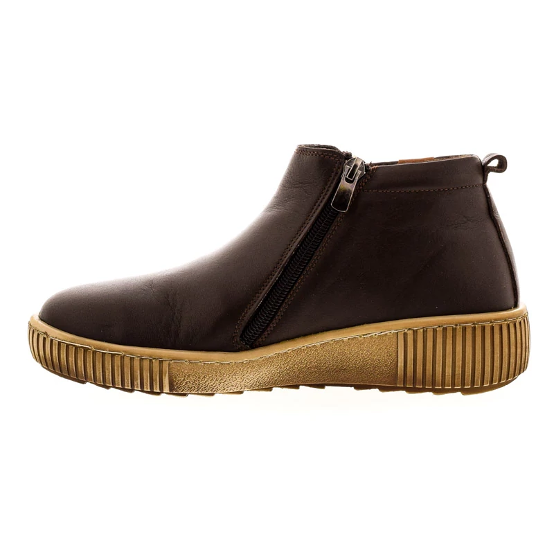 Sportos bokacipő. Felsőrésze természetes bőr, bélése textil és bőr kombinációja, talpa gumi, melynek paraméterei 40/25 mm. Kétoldali cipzáras kialakítása kényelmes le- és felvételt biztosít, rugalmas talpa pedig maximális komfortot nyújt a mindennapi viselet során. Sebastiano cipő webáruház Női cipő