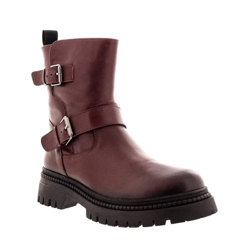 Sebastiano divatos női bokacsizma vagány, karakteres megjelenéssel. Felsőrésze természetes bőrből készült, bélése textil. A puha talpbélés kellemes komfortot biztosít egész napos használat során. Külső oldalán két pánt és fém csat díszítés teszi egyedivé a modellt. Talpa gumi, melynek paraméterei 45/30 mm (sarokmagasság/talpmagasság). Vastag gumitalpa stabil járást biztosít. Markáns, trendi fazon, modern utcai stílushoz kiváló választás. Sebastiano cipő webáruház Női cipő