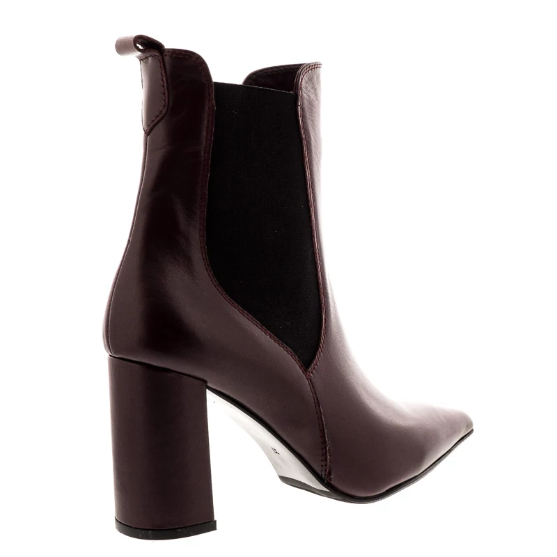 Sebastiano hegyesorrú bokacsizma. Felsőrésze természetes bőrből készült, bélése textil, talpa műanyag, sarokmagassága 85 mm. Vastag, stabil sarokkal rendelkezik, amely magabiztos járást biztosít. A két oldalon található rugalmas gumibetét kényelmes illeszkedést tesz lehetővé. Elegáns, nőies darab, amely tökéletes választás alkalmakra és elegáns hétköznapokra egyaránt. Sebastiano cipő webáruház Női cipő
