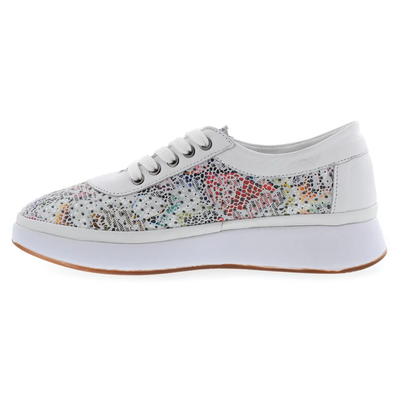 Kényelmes női félcipő, virágmintás felsőrésszel. A lábbeli felsőrésze és bélése természetes bőrből készült, talpa műanyag, melynek paraméterei 30/15 mm. (sarokmagasság/talpmagasság). A puha anyagból kialakított természetes bőr talpbetét hozzájárul a kényelmes viselet érzetéhez. Ahhoz, hogy sokáig tartós maradjon lábbelije, használjon cipőkanalat. Sebastiano cipő webáruház Női cipő