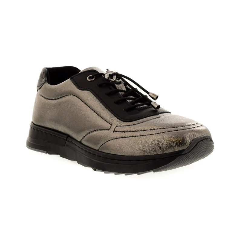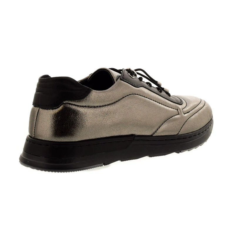 Ez a sportos, ezüst tónusú félcipő fiatalos lendületet visz bármely szettbe. A metálfényű felsőrész természetes bőrből készült. Fűzője gumifűző, mely megkönnyíti a felvételt. Bélése természetes bőr, talpa gumi, paraméterei 30/20 (sarokmagasság/talpmagasság). A könnyű és rugalmas gumitalp kényelmet biztosít a mindennapi rohanásban. Ez a darab tökéletes választás a sportosan elegáns stílus kedvelőinek. Sebastiano cipő webáruház Női cipő
