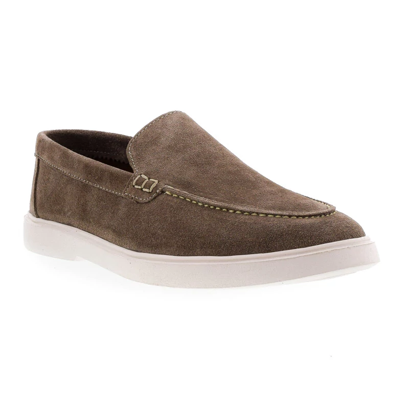Divatos férfi mokaszin. Felsőrésze velúrbőrből készült, bélése természetes bőr, talpa gumi, sarokmagassága 25 mm. A puha anyagból kialakított természetes bőr talpbetét hozzájárul a kényelmes viselet érzetéhez. Ez a könnyű félcipő ideális választás mindennapi viselethez. Ahhoz, hogy sokáig tartós maradjon lábbelije, használjon cipőkanalat. Sebastiano cipő webáruház Férfi cipő