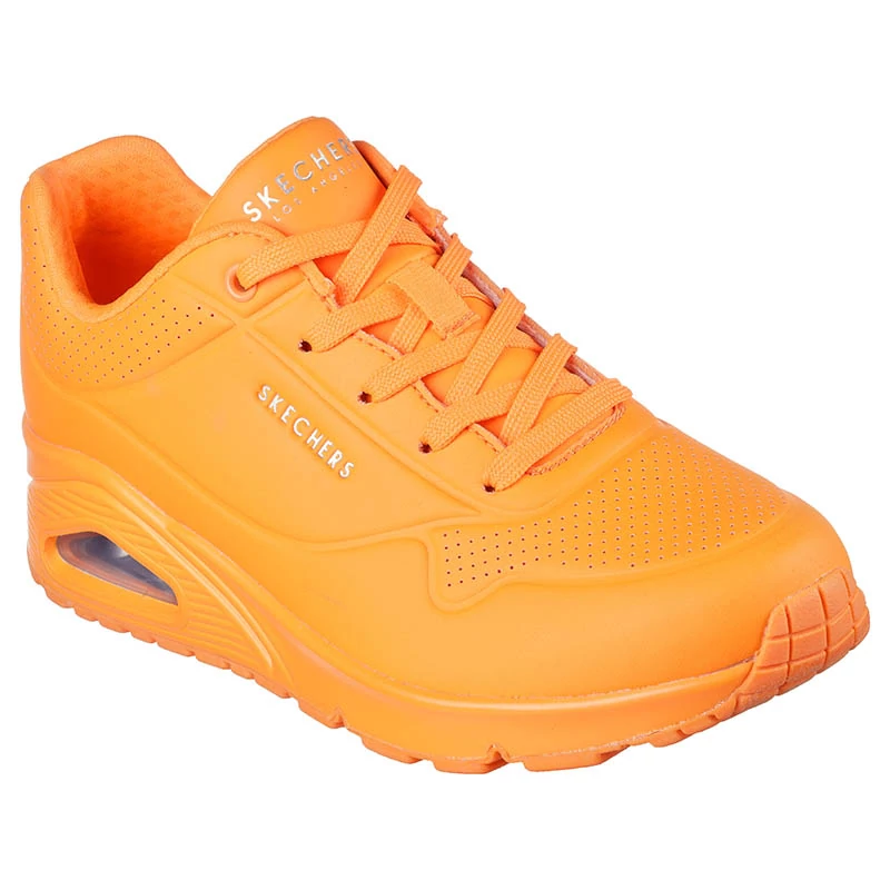Kápráztass el mindekit a Skechers Street Uno – Night Shades árnyalataival. Ez a divatos darab élénk színárnyalatokban kapható, így tökéletes kiegészítője a nyári ruhatárnak. Finoman perforált szintetikus felsőrész Air-Cooled Memory Foam talpbetéttel és Visible Skech-Air légpárnás középtalppal.A sarokrész 40 mm. Sebastiano cipő webáruház Skechers lábbeli