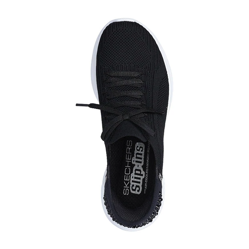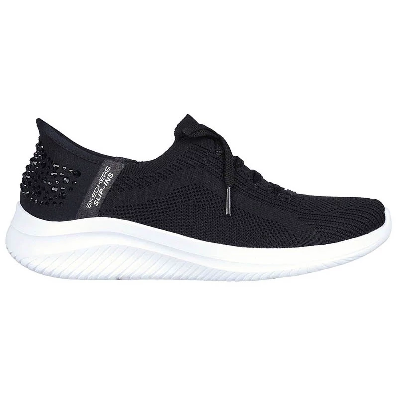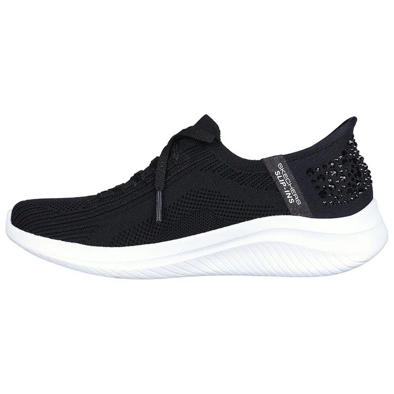 Adj egy kis csillogást lépteidhez könnyed kényelemmel – Skechers Hands Free Slip-ins®: Ultra Flex 3.0 - Shining Glitz. Ez a különleges Heel Pillow™ sarokpárnával rendelkező modell Stretch Fit® speciális kötött felsőrésszel, strasszos sarokszegéllyel, rögzített fűzővel és párnázott Skechers Air-Cooled Memory Foam® talpbetéttel készült. Sebastiano cipő webáruház Skechers lábbeli
