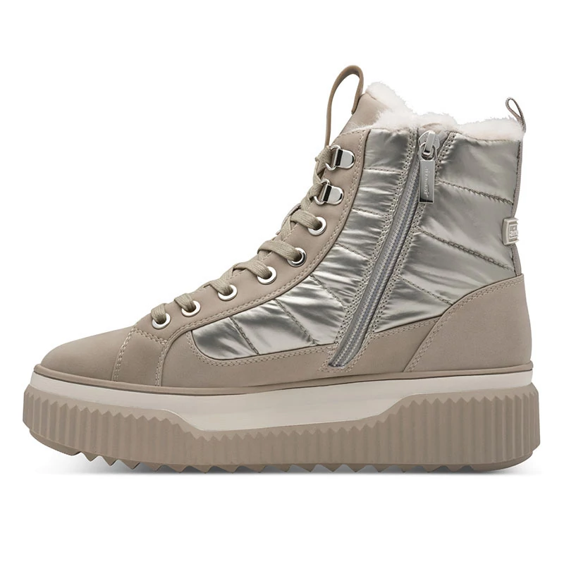 A lábbeli felsőrésze ekológikus bőrből készült. A sarok magassága 55mm.Touch–it A puha membrános lábágy extra kényelmet biztosít viselője számára, segít a lához való illeszkedésben. A zselés réteg folyamatosan veszi fel a láb alakját, igazodva a terhelés mértékéhez. Biztosítja a kényelmes járást mindenkor. A Tamaris Duo-TEX-es lábbeli a legextrémebb időjárásban is megállja a helyét. A Duo-TEX egy membrános szerkezetű szövet, ami vízlepergető tulajdonsággal rendelkezik. Sebastiano cipő webáruház Tamaris