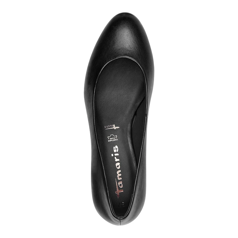 A lábbeli felsőrésze természetes bőrből készült. A sarok magassága 45 mm és Európai szabadalommal védett AntiShokk technológiájú mely 50%-al csökkenti a gerincoszlopra ható terhelést járás közben. Az Anti Slide megoldás a cipő biztos tapadását segíti elő.Touch–it A puha membrános lábágy extra kényelmet biztosít viselője számára, segít a lábhoz való illeszkedésben. A zselés réteg folyamatosan veszi fel a láb alakját, igazodva a terhelés mértékéhez. Biztosítja a kényelmes járást mindenkor. Sebastiano cipő webáruház Tamaris