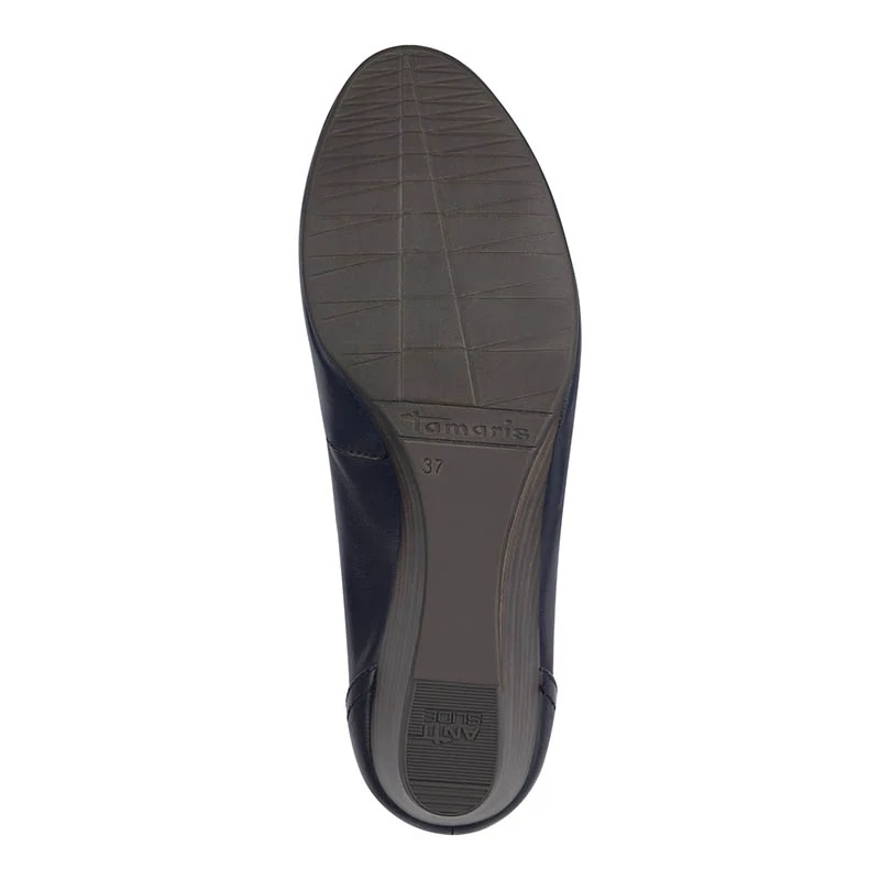 A lábbeli felsőrésze természetes bőrből készült. A sarok magassága 45 mm. . Az Anti Slide megoldás a cipő biztos tapadását segíti elő.Touch–it A puha membrános lábágy extra kényelmet biztosít viselője számára, segít a lábhoz való illeszkedésben. A zselés réteg folyamatosan veszi fel a láb alakját, igazodva a terhelés mértékéhez. Biztosítja a kényelmes járást mindenkor. Sebastiano cipő webáruház Tamaris