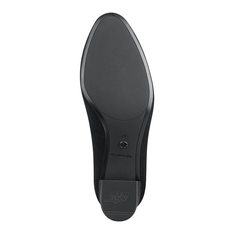 A lábbeli sarka 70 mm és Európai szabadalommal védett AntiShokk technológiájú mely 50%-al csökkenti a gerincoszlopra ható terhelést járás közben. Az Anti Slide megoldás a cipő biztos tapadását segíti elő.  Sebastiano cipő webáruház Tamaris