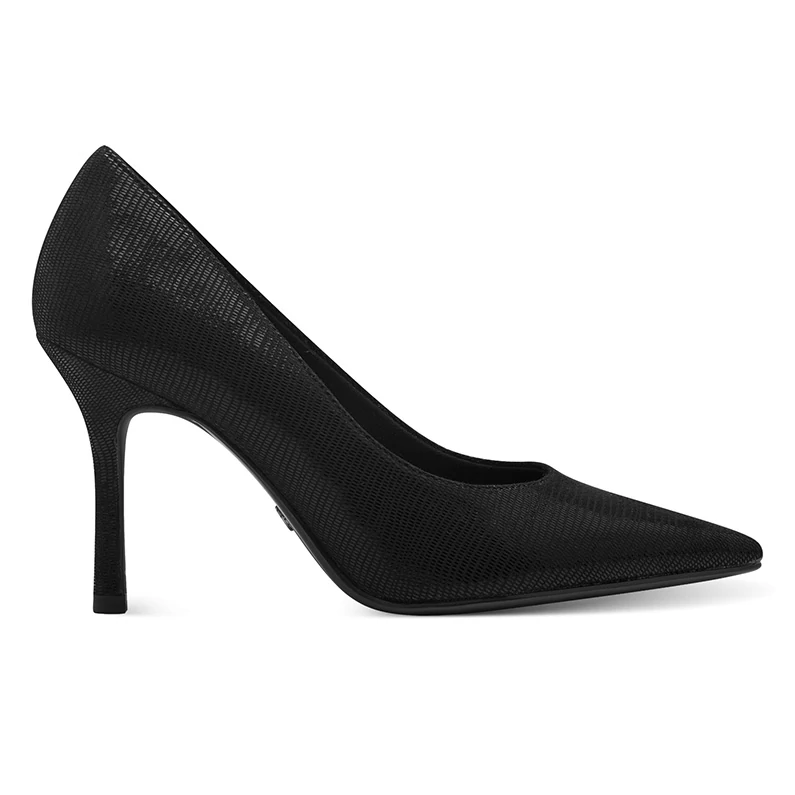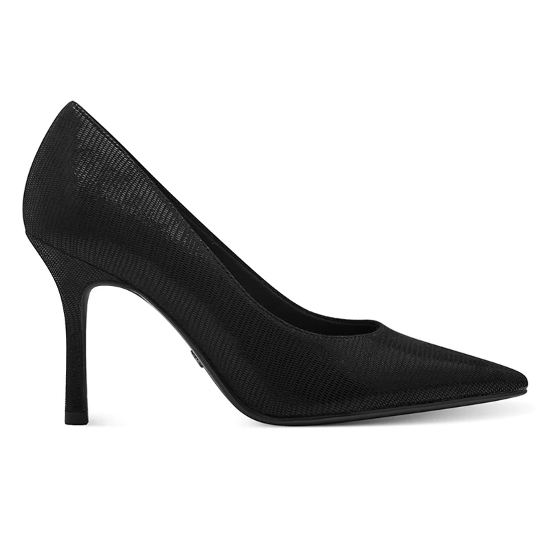 A lábbeli felsőrésze textilből készült. A sarok magassága 90 mm.Touch–it A puha membrános lábágy extra kényelmet biztosít viselője számára, segít a lábhoz való illeszkedésben. A zselés réteg folyamatosan veszi fel a láb alakját, igazodva a terhelés mértékéhez. Biztosítja a kényelmes járást mindenkor. Sebastiano cipő webáruház Tamaris