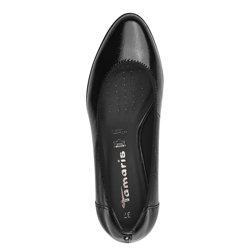 A lábbeli felsőrésze természetes bőrből készült. A sarok magassága 55 mm és Európai szabadalommal védett AntiShokk technológiájú mely 50%-al csökkenti a gerincoszlopra ható terhelést járás közben. Az Anti Slide megoldás a cipő biztos tapadását segíti elő.Touch–it A puha membrános lábágy extra kényelmet biztosít viselője számára, segít a lábhoz való illeszkedésben. A zselés réteg folyamatosan veszi fel a láb alakját, igazodva a terhelés mértékéhez. Biztosítja a kényelmes járást mindenkor. Sebastiano cipő webáruház Tamaris