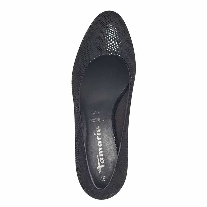 A lábbeli felsőrésze textilből készült. A sarok magassága 60 mm.Touch–it A puha membrános lábágy extra kényelmet biztosít viselője számára, segít a lához való illeszkedésben. A zselés réteg folyamatosan veszi fel a láb alakját, igazodva a terhelés mértékéhez. Biztosítja a kényelmes járást mindenkor. A lábbeli úgynevezett COMFORT lining puha nagyon kényelmes talpbetéttel rendelkezik. Sebastiano cipő webáruház Tamaris