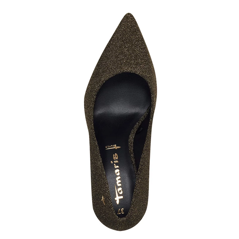 A lábbeli felsőrésze textilből készült. A sarok magassága 75 mm és Európai szabadalommal védett AntiShokk technológiájú mely 50%-al csökkenti a gerincoszlopra ható terhelést járás közben. Az Anti Slide megoldás a cipő biztos tapadását segíti elő.Touch–it A puha membrános lábágy extra kényelmet biztosít viselője számára, segít a lábhoz való illeszkedésben. A zselés réteg folyamatosan veszi fel a láb alakját, igazodva a terhelés mértékéhez. Biztosítja a kényelmes járást mindenkor. Sebastiano cipő webáruház Tamaris