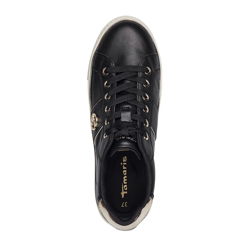 A lábbeli felsőrésze természetes bőr és ekológikus bőr felhasználásával készült. A talp magasséga a sarok résznél 35 mm.A lábbeli úgynevezett COMFORT lining puha nagyon kényelmes talpbetéttel rendelkezik. Sebastiano cipő webáruház Tamaris
