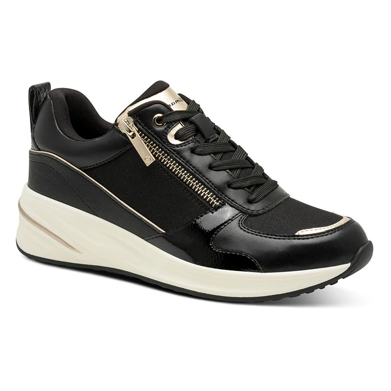A lábbeli felsőrésze ekológikusbőrből készült. A talp magassága a saroknál 45 mm.A lábbeli úgynevezett COMFORT lining puha nagyon kényelmes talpbetéttel rendelkezik. A talpbetét kivehető Sebastiano cipő webáruház Tamaris
