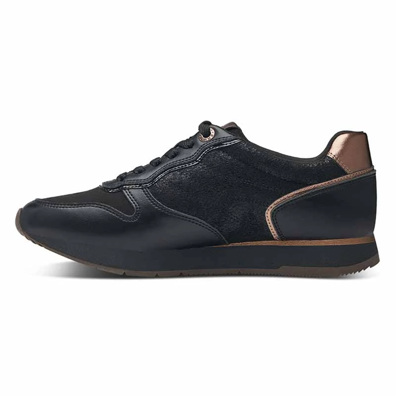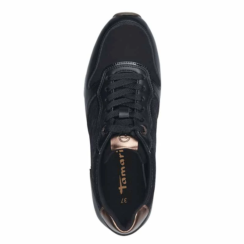 A lábbeli felsőrésze ekológikus bőr és textil felhasználásával készült. A talp magassága 25 mm.Touch–it A puha membrános lábágy extra kényelmet biztosít viselője számára, segít a lábhoz való illeszkedésben. A zselés réteg folyamatosan veszi fel a láb alakját, igazodva a terhelés mértékéhez. Biztosítja a kényelmes járást mindenkor. A lábbeli úgynevezett COMFORT lining puha nagyon kényelmes talpbetéttel rendelkezik. Sebastiano cipő webáruház Tamaris