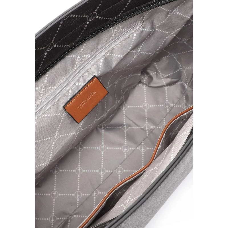 Tamaris márkájú, divatos női kézitáska. Külső rész anyagösszetétele % Polychlorid 70, Polyurethan 30, belső része Polyester 100%. Vállpánttal rendelkezik, melynek mérete 150cm. Kézi fogantyú mérete 22cm. A táska méretei: (szélesség x mélység x magasság) 39 x13 x29 cm. Származási hely: Kína Sebastiano cipő webáruház Tamaris